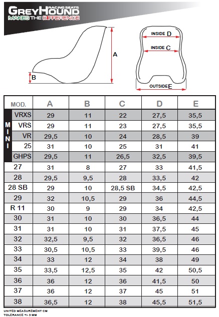 GreyHound Stoel maten tabel